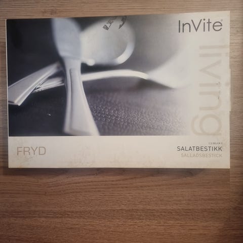 Pent brukt salatbestikk fra Stelton, designet av Arne Jacobsen for den klassiske serien Cylinda-line. Bestikket er av stål og er 31,5 cm langt.