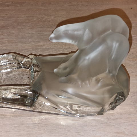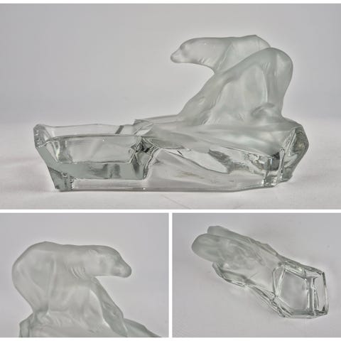 Se bildene for mål og skadebeskrivelse. Har ingen krakkeleringer, men har skader i form av musebitt , ett på hver side av "bassenget", på begge ørene, og småskader/musebitt på undersiden. Kan sendes sporbart med postnord til 129 kr i porto. Ikke fiks ferdig eller helt hjem