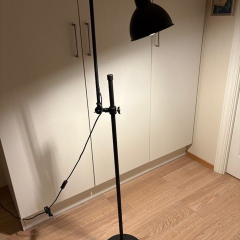 Stålampe med skjerm, justerbare høyde 133-193cm. Skjermen er 15,5cm i diameter.