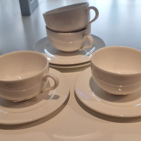 Espressokoppene er ca 7 cm i diameter og ca 4 cm høye.