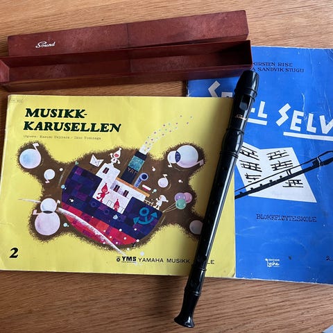 93 år gammel lærebok i blokkfløyte- blokkfløyte skolen