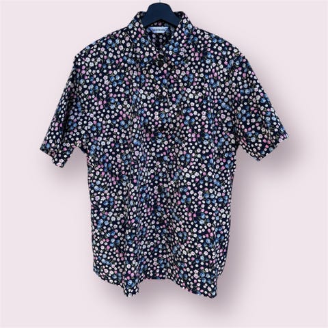 Skjortekjole i cordfløyel i høstfarger. Brukt en gang. Knappestolpe foran, ermene kan brettes opp og festes med innvendig knapp, lommer i siden. Oppleves som romslig og lang.