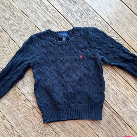 Godt brukt Polo Ralph Laurent half zip med krage i fargen mørk blå. Kjøpt ny høst 2024, men litt slitt i farge og noe nupper da den er brukt mye. Str 10-12 år, men anses som litt liten i str.