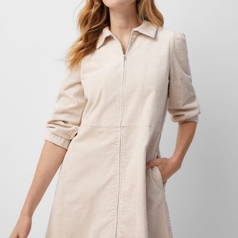 Just Female Skinnkjole i beige farge, størrelse L. Kjolen har et dobbeltspent design med lange ermer og er laget av skinnmateriale. Super flott men str passet dessverre ikke. kostet 2700 ny