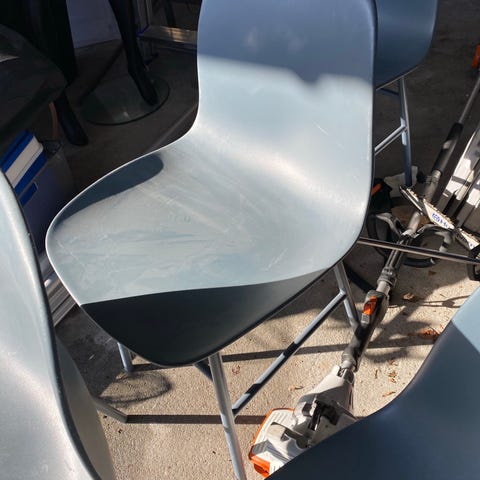 4stk Fantastiske originale glasfiber skalstole, brugt i venteværelse hos det Amerikanske militær i gamle dage, patina som de skal have, men ingen skader på glasfiber. - pris er per stk