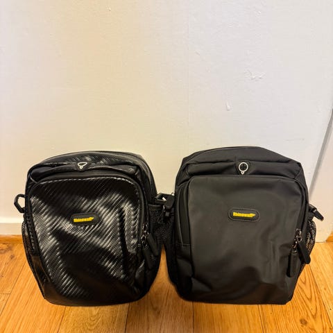 Jeg gjorde en bestilling på disse, men det viste seg å ikke passe sykkelen min. En veske rommer 25 liter. Det finnes en glidelås på utsiden og en på innsiden av hver veske.