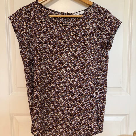 Kun brukt en gang. 100 % polyester, sitter løst over magen. Sendes i posten, kjøper betaler porto. Jeg har flere klesplagg til salgs, og kommer til å legge ut mer fortløpende, i tillegg til noen sko, et par skøyter, belter, smykker, kjøkkenutstyr, interiørting mm. Kjøper du flere klesplagg/ting kan du få litt rabatt, evt avtale å hente det du vil kjøpe i Oslo.