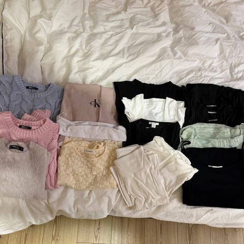 #klespakke#sportsklær#bukse#slengbukse#topp#bluse#overdel#treningsklær#kjole#skjørt#guessveske#skjorte#sisterspoint#amisu#hem
