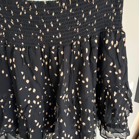 «Jodis mini skirt» fra Second Female. Et lekkert skjørt i lett bomullsstoff. Skjørtet har strikk i midjen og søt volangkant nederst på skjørtet. Normal i størrelsen.