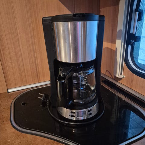 Selger den «lille» trakteren min da jeg ikke har bruk for den lengre. Den tar ikke like stor plass som en vanlig kaffetrakter men trakter likevel opptil 6,5 dl kaffe. Skrur seg av selv en stund etter at den har traktet ferdig.