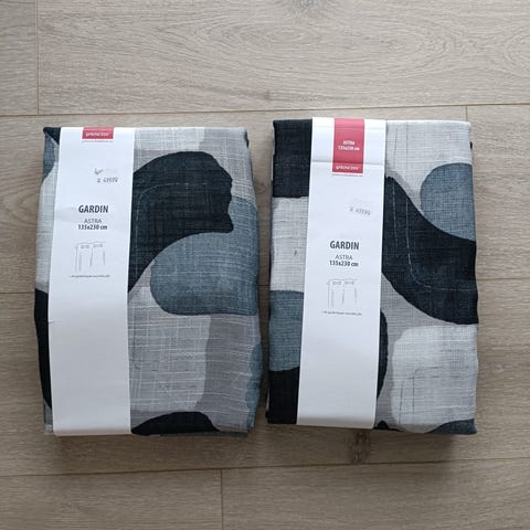 Gardiner – 2 stk. Selges komplett med gardinomtak og veggkroker.
