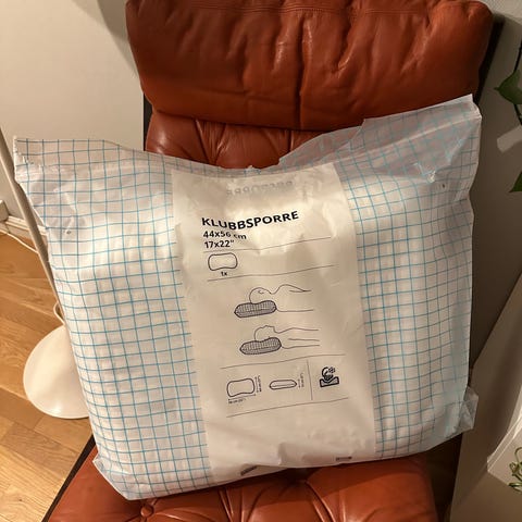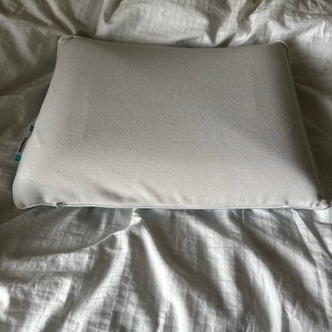 En ergonomisk pute med to typer komfort; myk og dempende skum på en side og en kjølig gele på den andre.