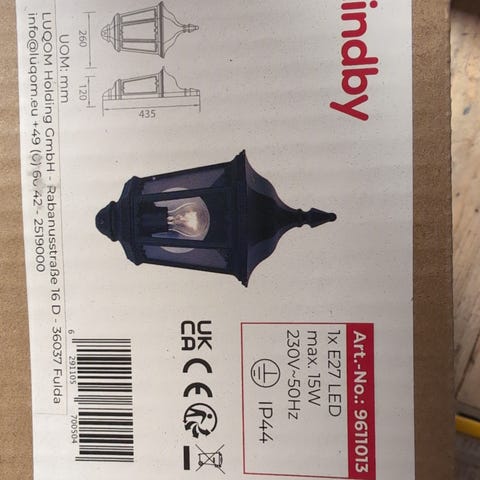 Ca 165 cm . Utendørs belysning m/strømledning.