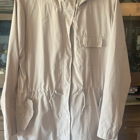 Helt ubrukt jakke fra Lea Bergen. Ikke foret, så passer perfekt som høst- og vårjakke. Hette og knepping, minner litt om duffle coat. Kan hentes på Håpet eller sendes.