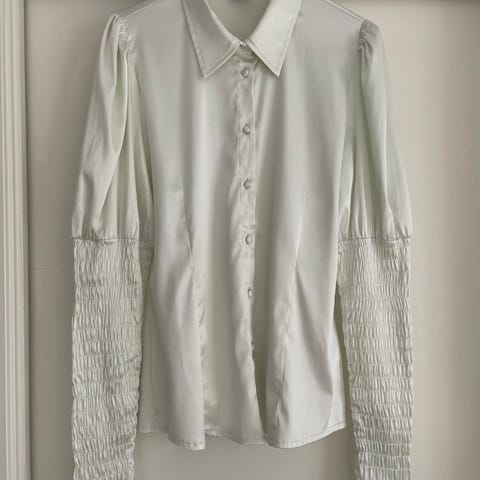Blusen har nydelige detaljer på armene og mye stretch. Den er i str S, men pga mye stretch kan den passe en XS’ og en liten M også💗