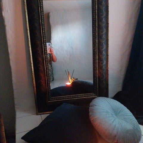 Stor speil med brun/gull mønster