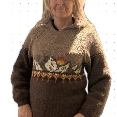 Hjemmestrikket genser. Passer small/medium. Kan sendes ved at kjøper betaler porto