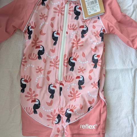 Selger en helt super UV-drakt fra Reflex i rosa med sjøhester, da mini har vokst ut av den.