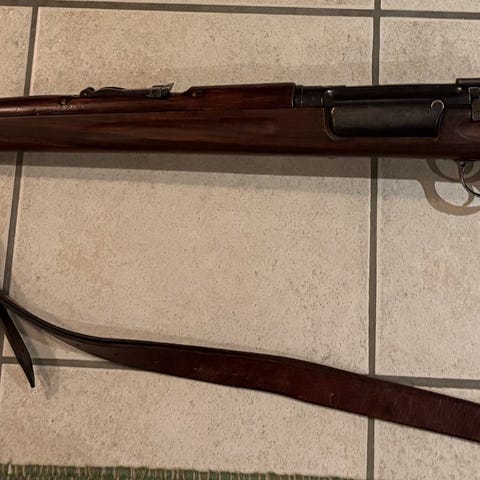 Gammel krag Jørgensen, våpen lisens kreves. Litt usikker på kaliber men når jeg prøver en 7,92x57mm Mauser så ser den ut til å stemme. Tror denne kan være ifra denne serien. https://www.kvf.no/vaapen.php?type=Rifle&weaponid=RIF0109