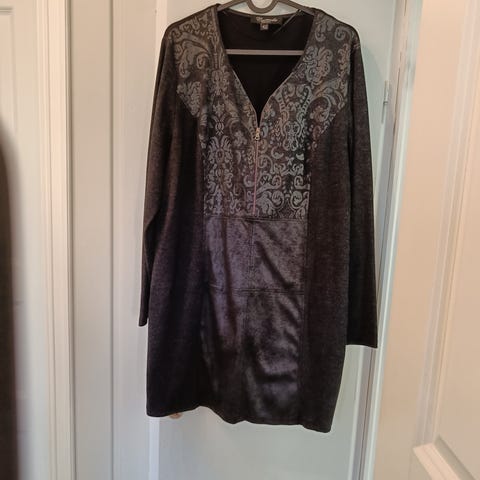 Tunika i polyester- mønster i blå, hvit, beige og sølv.