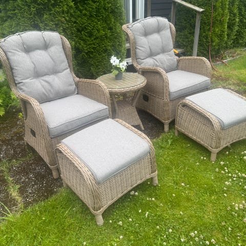 Putene er veldig fine, de er nylig vasket, og trenger ikke vask. Sette er veldig fin, siden den har ligget under sola mye, så har den forandret litt på fargen på toppen, men det er ikke noe stort!