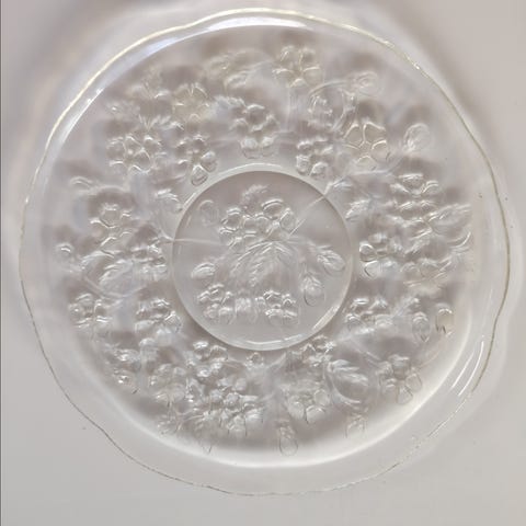 Vakkert serveringsfat i glass med en sol i midten, og bølgeformet mønster i kanten ☀️🌊