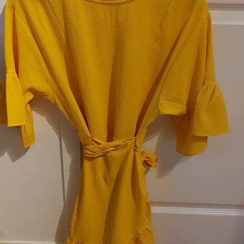 Veldig pent brukt, som ny. Fin gul sommerkjole med glidelås i siden og knyting i livet. Har underkjole.