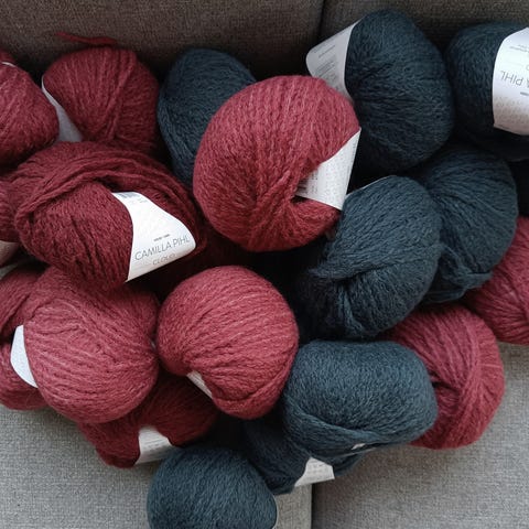Blandingsgarn, 100% akryll, 1 nøste er 100 gram/136 meter. Bulky, kategori 5, pinnestørrelse 6mm.