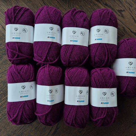 Blandingsgarn, 100% akryll, 1 nøste er 100 gram/136 meter. Bulky, kategori 5, pinnestørrelse 6mm.
