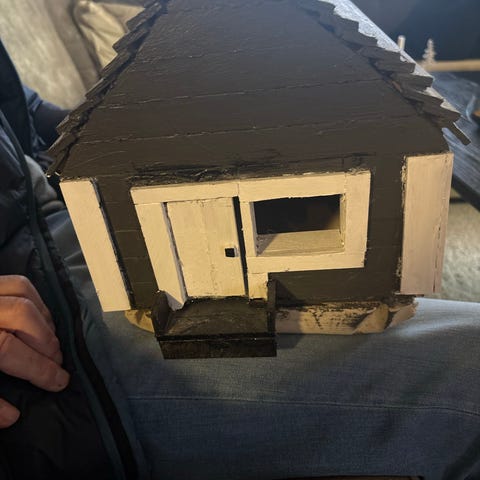 Dukkehuset er så vidt påbegynt, men kun selve rammeverket. Alt av detaljer gjenstår.