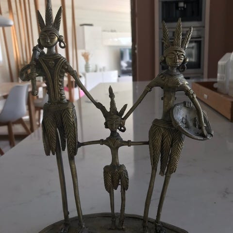 Selger to flotte messingfigurer som forestiller løver eller tigre. De er hver 40 cm lange og veier hele 2300 gram. Laget i massiv messing, med flotte detaljer og naturlig patina som gir et eksklusivt og antikkpreg. Passer perfekt som interiørdetaljer i hjem med klassisk, orientalsk eller vintage stil.