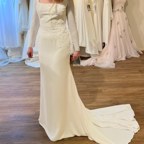 Brukt en gang 7/6-2025. Vasket og steamet og klar til bruk. Kan sende flere bilder. Str 40. Jeg bruker str 38 til vanlig. Utgangspris 89 90sek som er 9470 NOK. Jeg brukte singlet under. Se bilde.