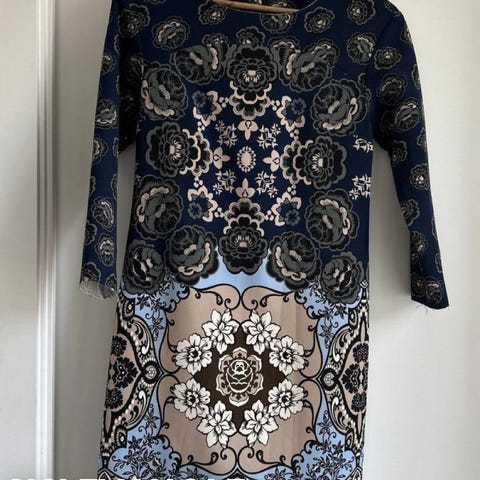 Enkel kjole. Litt solid stoffkvalitet i 80 % ull og 20 % polyamid nylon.