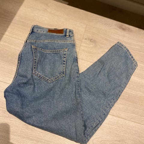 Kjempekule jeans fra Never Denim, modell baggy, pent brukt, str 28/32.