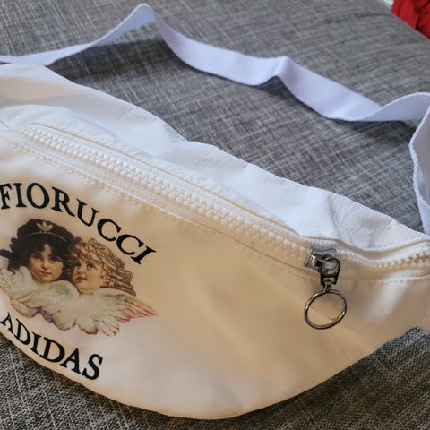 utrolig kule adidas x fiorucci jeans, lys denim med ikoniske hvite striper