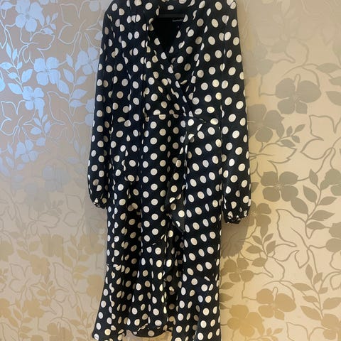 Kjempefin, svart kjole fra Kjoledamen og merket Heartmaker. Aldri brukt, men lappen et tatt av. Bånd i livet som kan strammes for å markere midjen. Størrelse L.