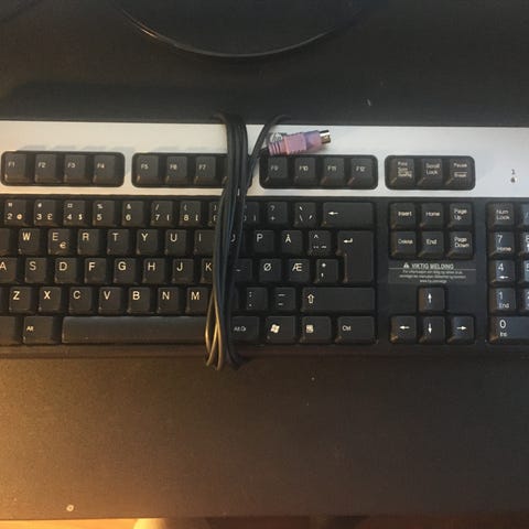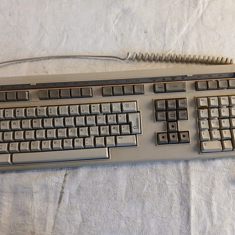 Brukt med synlige bruksspor og misfarging på taster og håndleddstøtte. Utestet og selges som den er, uten garanti for funksjon.