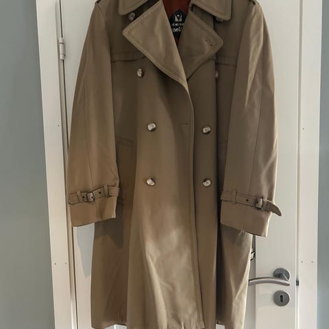 Frakk i kraftig twillvevet bomullsblanding med lett vannavstøtende overflate, skrå lommer i front, to innerlommer med glidelås og skjult knappestolpe ...
