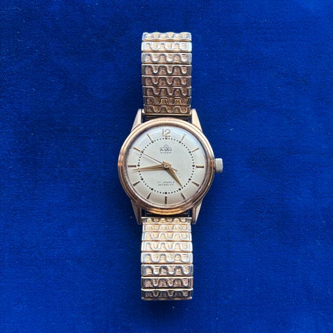 Selges kjøpt 20.03.2025, vakker Fortis med et klassisk utseende og ideelle dimensjoner på 40 mm, tykkelse kun 9,7 mm. Klokken er ikke brukt, komplett fabrikksett. Jeg legger til en veldig fin fluorgummirem, med lerret på toppen. Pris på ny klokke 16-18 000 kr. Vennligst gi bud, bytte mulig.