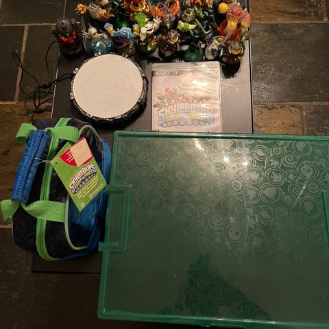 Playstation 3 med to konsoller, flere spill, masse skylanderfigurer og alt av ledninger selges. Selges samlet eller hver for seg. Kom med bud på det du vil ha. Total verdi langt over 10000,- for alt samlet.