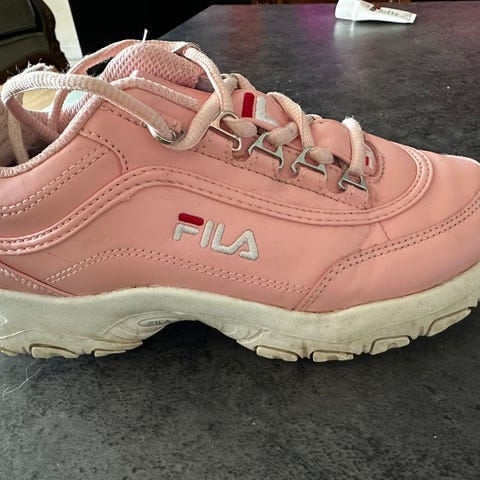 Grå og blå fila sko, pent brukt men med noen bruksmerker 😊