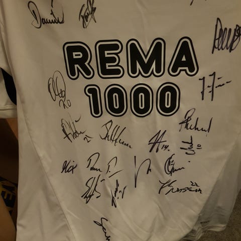 Selger en Newcastle drakt, signert av legenden Alan Shearer.