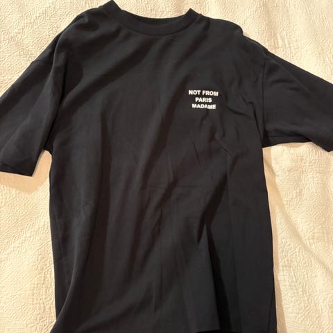 T-skjorte fra Drôle de monsieur med deres kjente slagord «Not from paris madame».