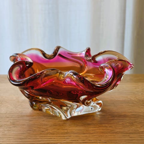 Hel og pen stor skål i kunstglass, designet av Josef Hospodka for Chribska Glassworks 1960-tallet