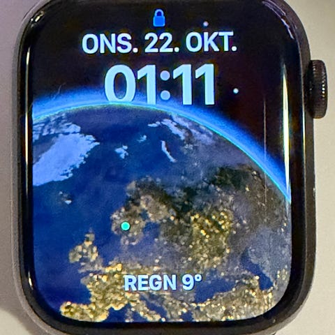 Selger en pent brukt Apple Watch Series 7 i 45mm, rustfritt stål (farge: Graphite). Klokken kommer med matchende originalt Milanese Loop-bånd i rustfritt stål, også i Graphite.