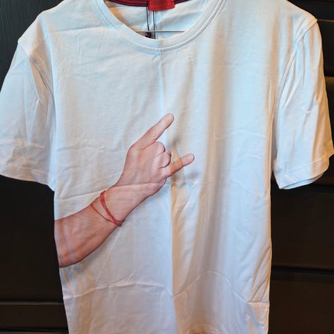 Selger to forskjellige unikke t-skjorter jeg designet selv. Hvite med trykk nede på ryggen.
