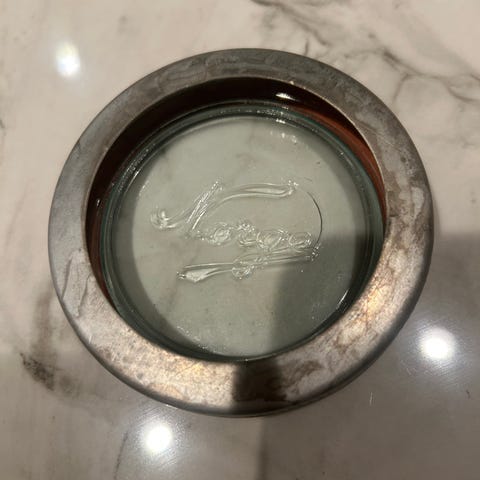 Gammel delvis rusten Cathrineholm-kjele. Brukt til planter/hage