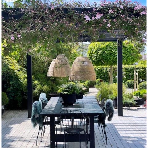 Ca diameter på taklampe er 60cm. Og total lengde fra tak 105cm.