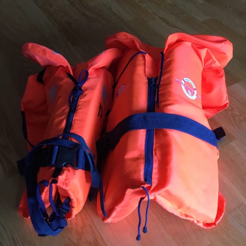 Betalte ekstra for farger gult/antrasitt, spenner i metall (normalt i plast), refleks elementer, større logo, utvidet reparasjonskit, sidevesker 5 liter hver, 4 stykk.