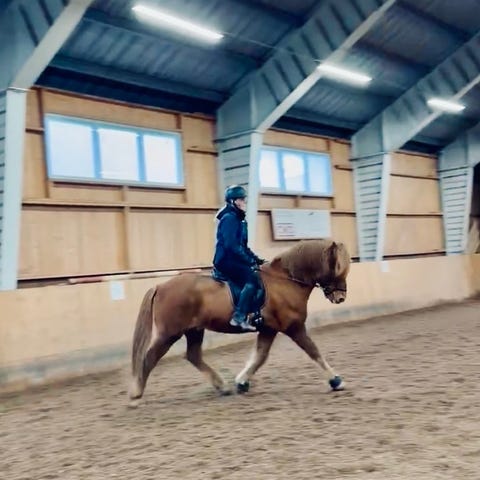 Farfar er landsmotvinner som femgjenger med 9 i tølt og 9.5 i pass
